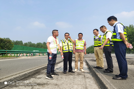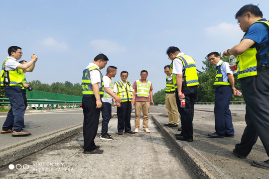 6月27日合肥交投集團(tuán)董事長(zhǎng)黃惠民等一行到我公司中標(biāo)承建的2019-2021年度安徽省部分高速公路路面修復(fù)養(yǎng)護(hù)工程02標(biāo)北環(huán)高速養(yǎng)護(hù)施工現(xiàn)場(chǎng)檢查并慰問(wèn)現(xiàn)場(chǎng)工作人員。黃惠民聽取了現(xiàn)場(chǎng)負(fù)責(zé)人譚宜飛的匯報(bào)后,對(duì)我公司的施工方案、工程進(jìn)度給予充分肯定。因2019年工期緊、任務(wù)重,黃惠民要求在保證施工質(zhì)量和安全的基礎(chǔ)上,加快施工進(jìn)度。