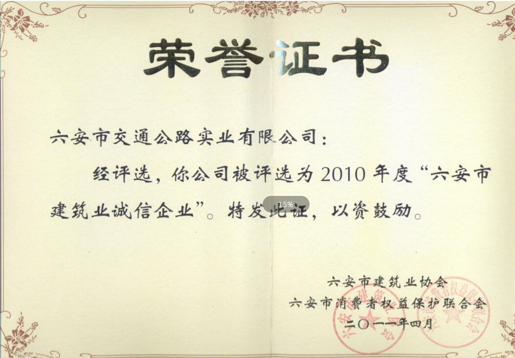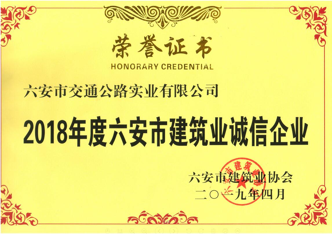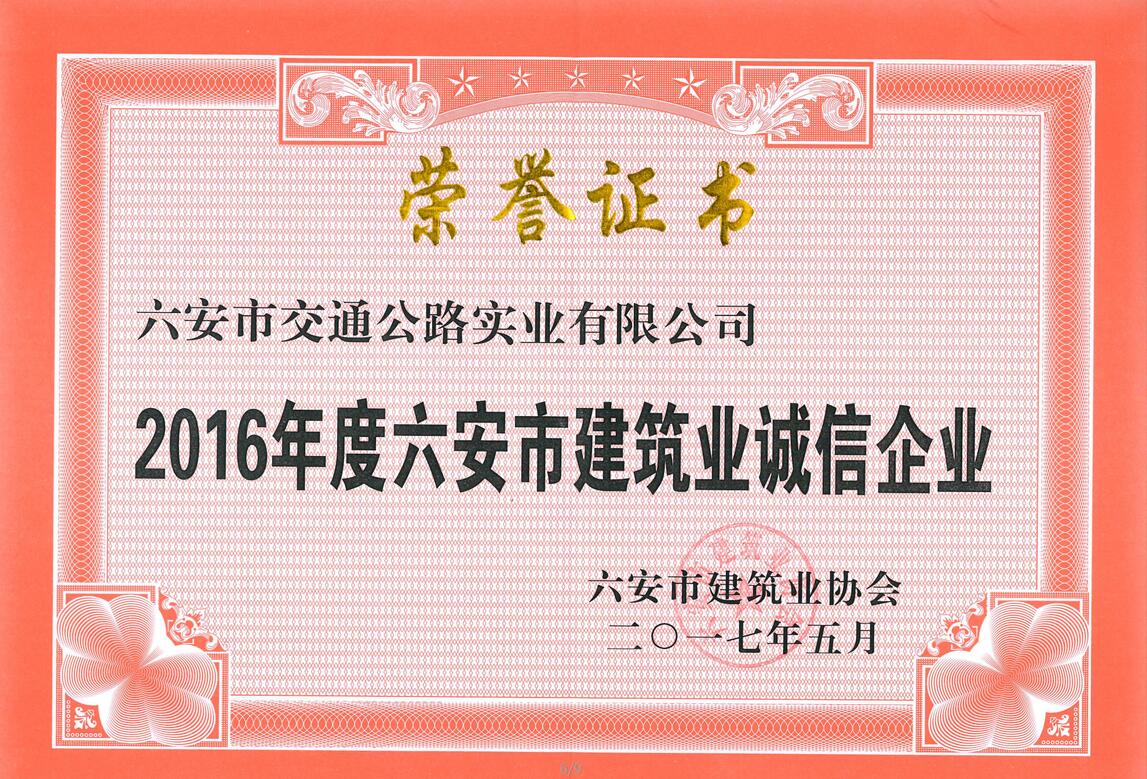 六安市建筑業(yè)誠信企業(yè)