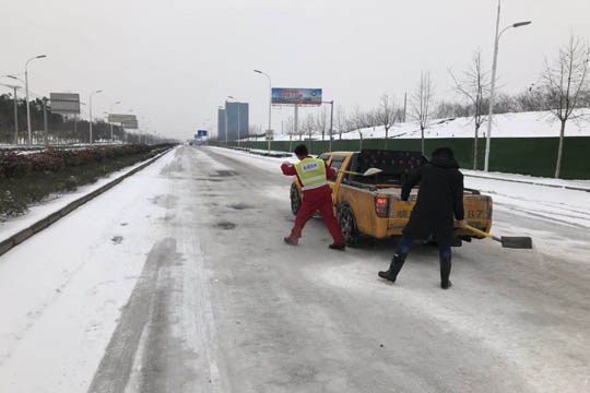 本次鏟冰除雪我公司平均每天投入除雪人員60人次、除雪鏟車6臺(tái)次、積雪轉(zhuǎn)運(yùn)車5臺(tái)次、皮卡車14輛次,共撒鋪融雪劑(工業(yè)鹽)32.5噸、此次鏟冰除雪,公司共計(jì)投入資金約26萬元。