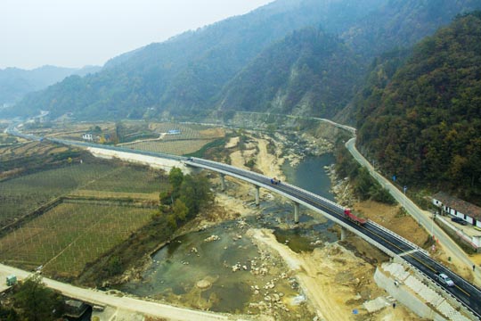 本項(xiàng)工程位于金寨縣燕天路上,是連接天堂寨風(fēng)景區(qū)重要旅游道路。去年“6.30”特大暴雨造成漁潭村境內(nèi)山體滑坡、道路塌方、交通中斷。災(zāi)情發(fā)生后,各級政府及交通主管部門十分重視,立即組織搶修,特別是負(fù)責(zé)該路管養(yǎng)的六安市公路管理局在保障通行的前提下,以最快速度組織專家評審、論證、設(shè)計(jì)、招標(biāo)、實(shí)施。該項(xiàng)工程全長1356米,包括2座大橋、1座中橋,中標(biāo)施工企業(yè)六安市交通公路實(shí)業(yè)有限公司精心組織、全力投入、克服重重困難,經(jīng)過242天的艱苦奮戰(zhàn)終于如期、保質(zhì)、安全完成施工任務(wù)。
