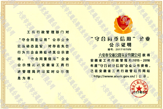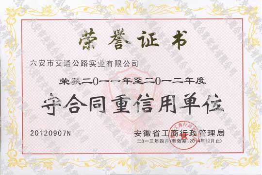 省守合同重信用證書